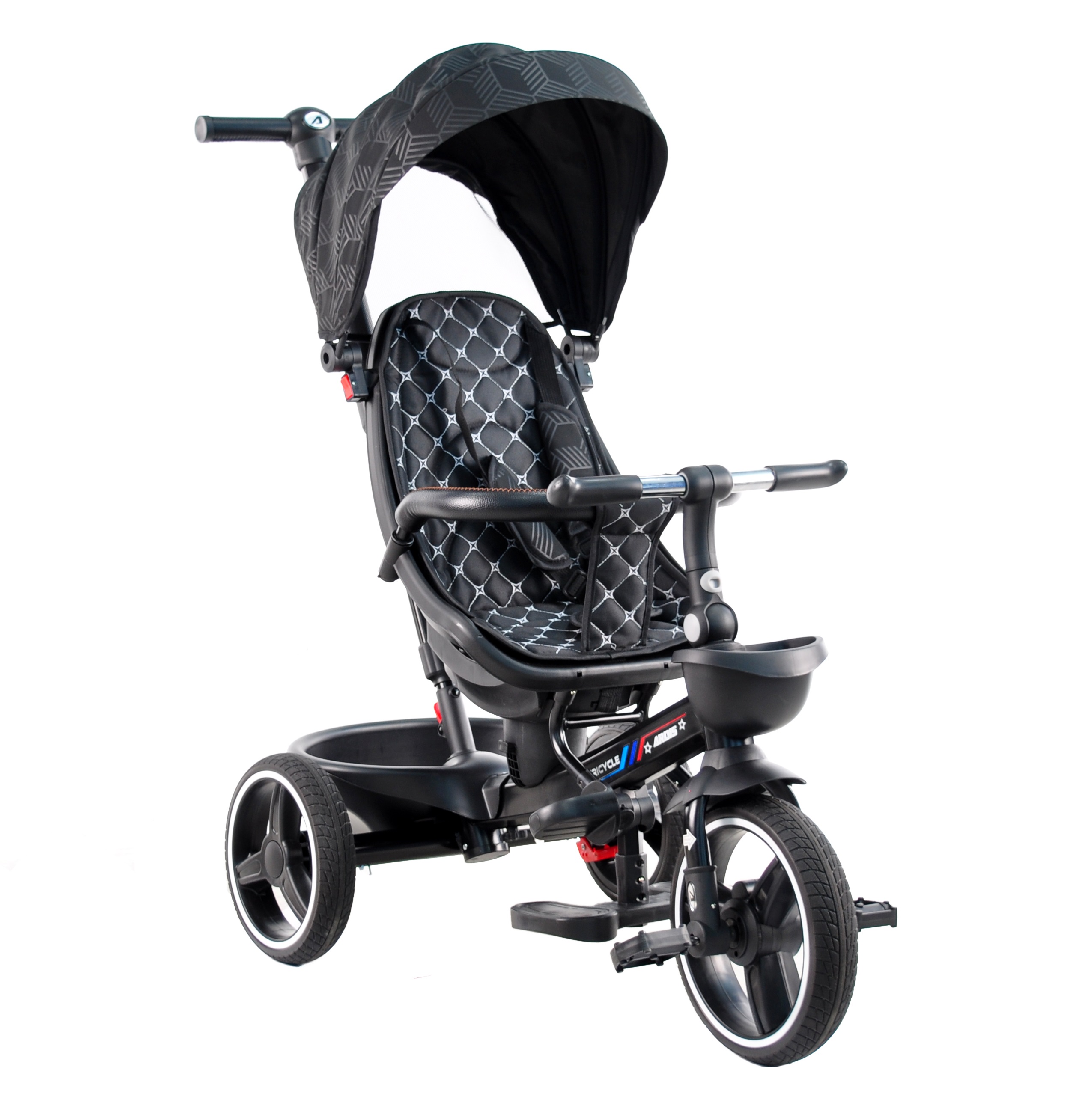 Триколісний велосипед, який росте разом із дитиною, призначений для дітей від 1 до 5 років. Спочатку дитину можна катати на велосипеді — батько контролює велосипед за допомогою ручки, яка може використовуватися для зміни напрямку руху. Коли дитина підросте та зможе самостійно крутити педалі й керувати велосипедом, можна зняти запобіжні пристрої.