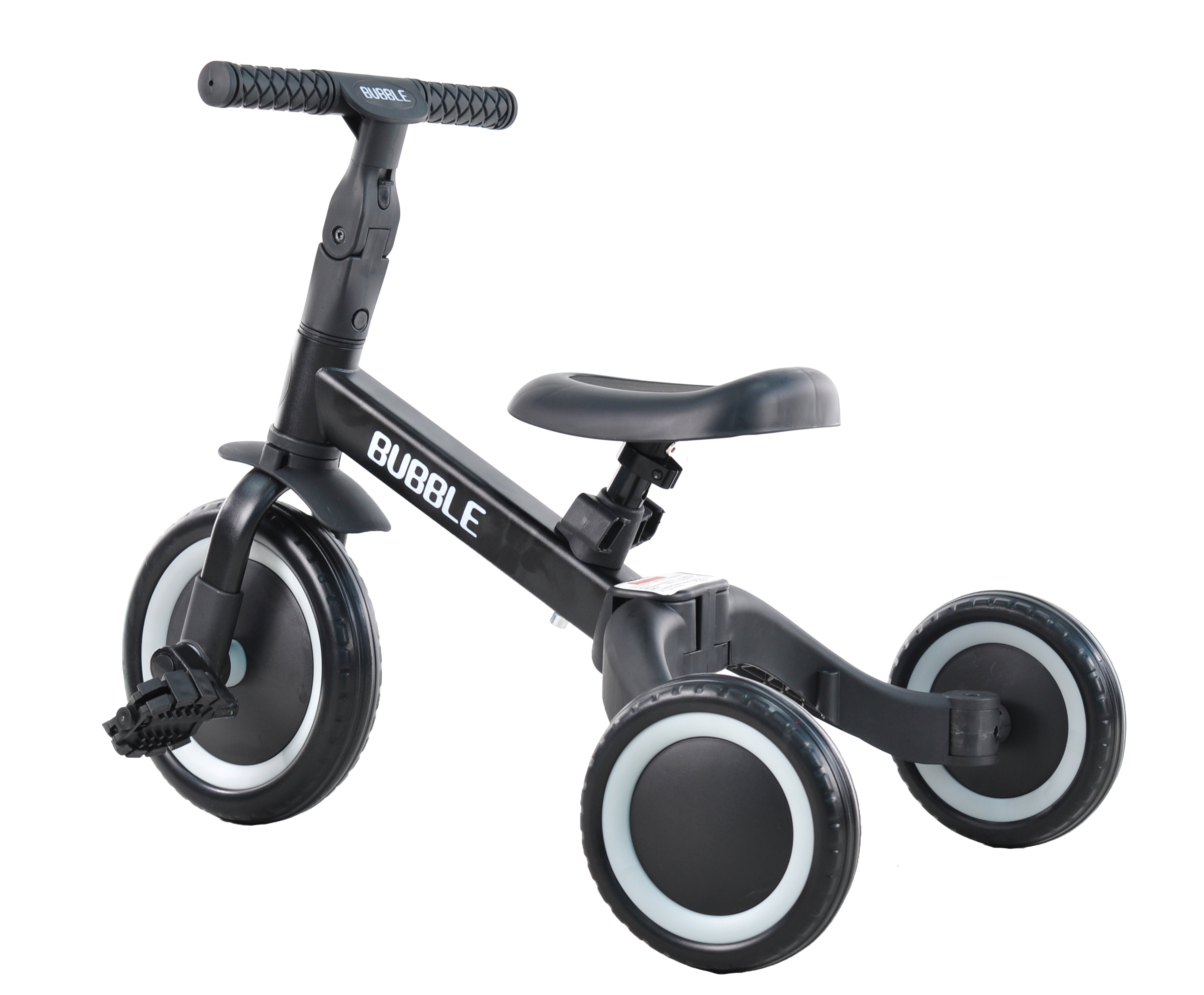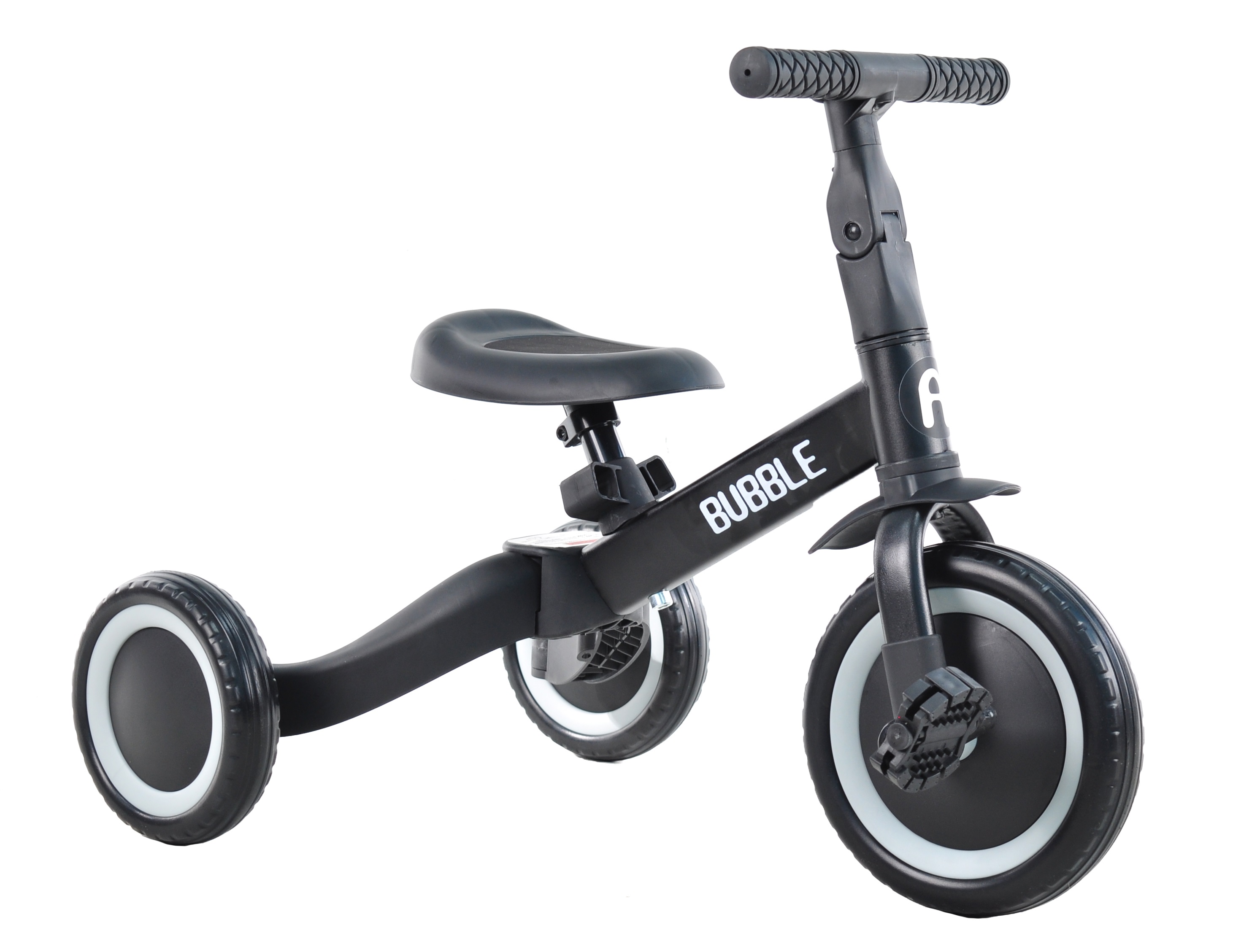 Триколісний велосипед, який росте разом із дитиною, призначений для дітей від 1 до 5 років. Має складану та надійну конструкцію. Спочатку можна використовувати як триколісний велосипед а коли дитина підросте та зможе самостійно крутити педалі або використовувати як біговел. Висота сідла регулюється, також регулюється кут нахилу керма.