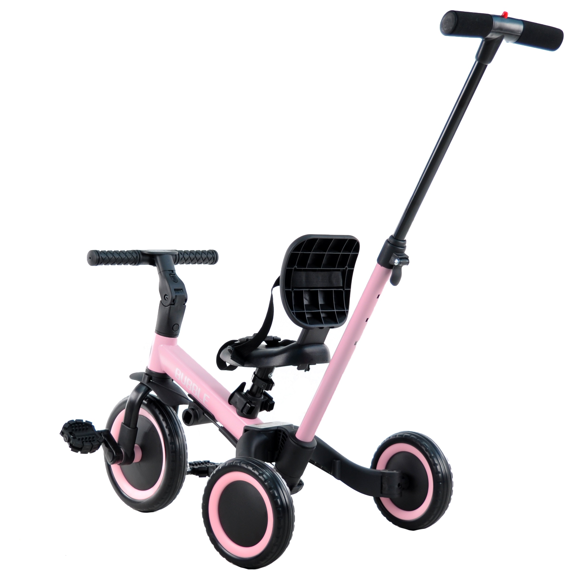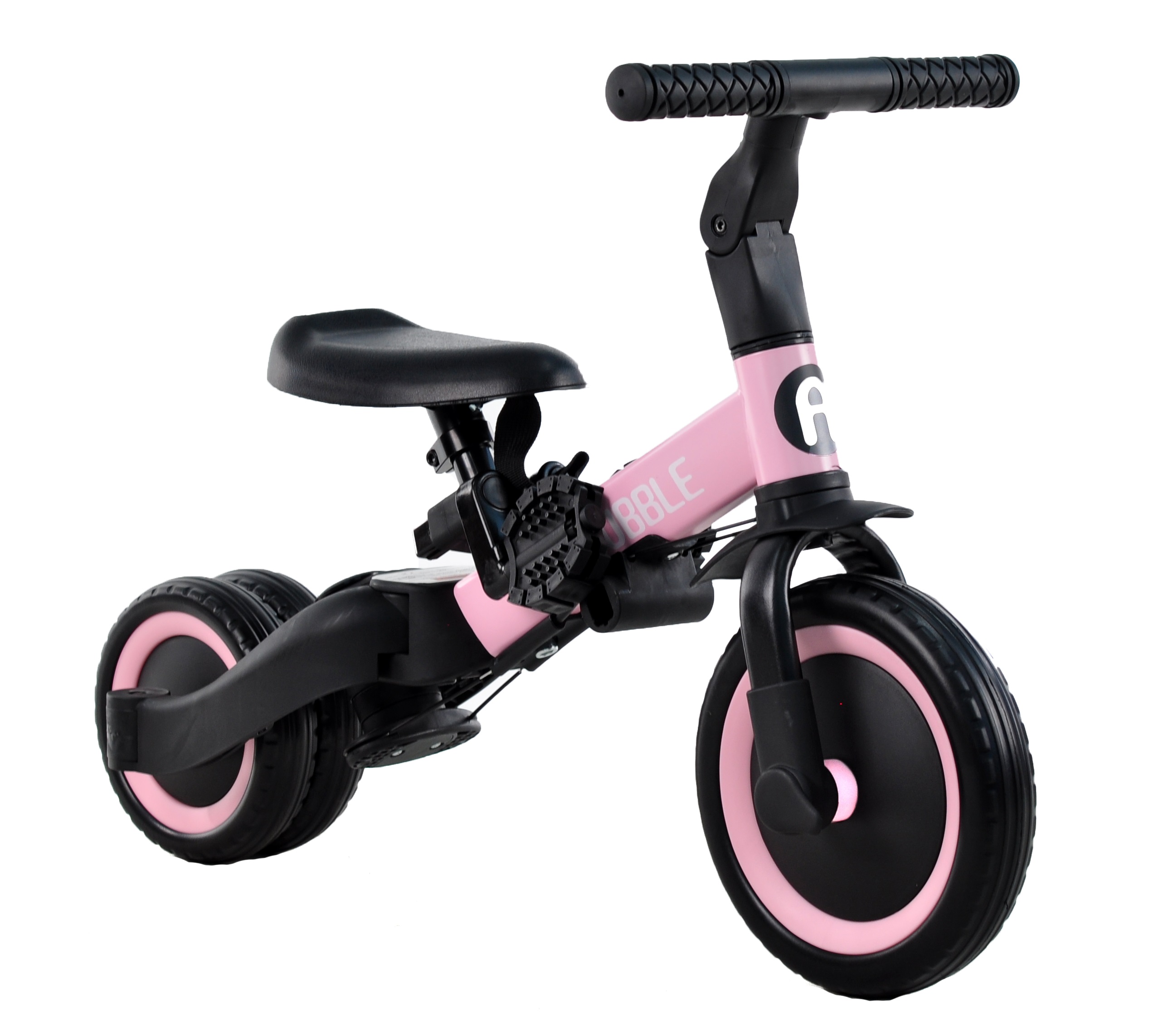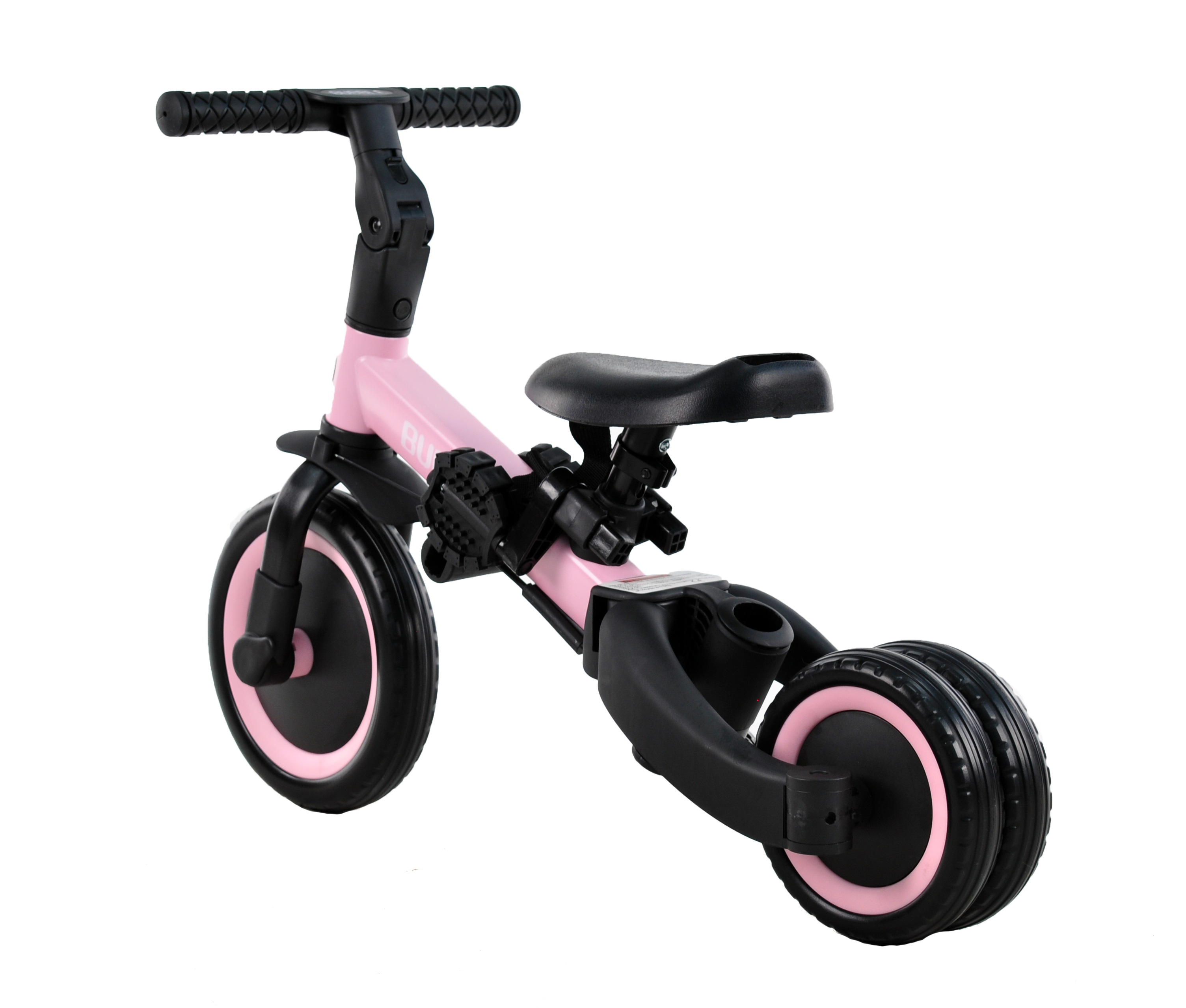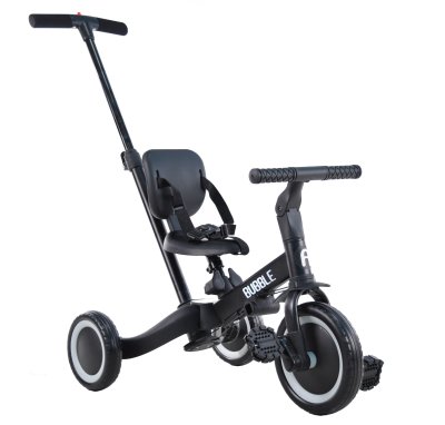 Триколісний велосипед, який росте разом із дитиною, призначений для дітей від 1 до 5 років. Має складану та надійну конструкцію. Спочатку можна використовувати як триколісний велосипед а коли дитина підросте та зможе самостійно крутити педалі або використовувати як біговел. Висота сідла регулюється, також регулюється кут нахилу керма. Є батьківська ручка для керування