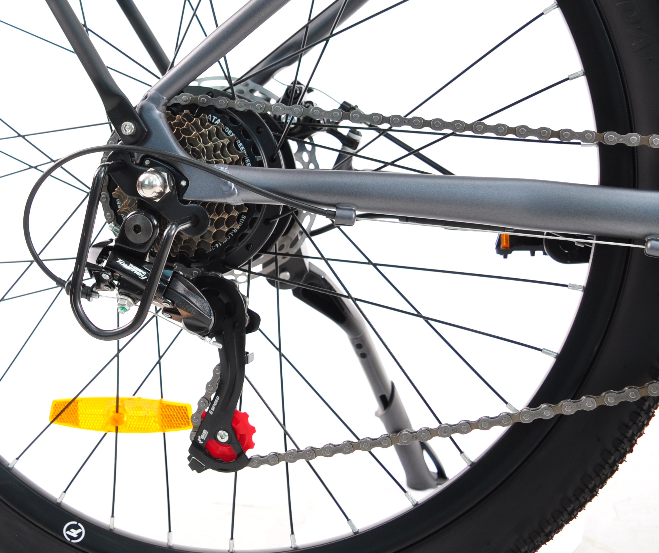 Запас ходу від електродвигуна становить до 35 км, але навіть після цього ви зможете продовжувати рух як на звичайному велосипеді. Максимальна швидкість – 32 км/год (обмежена електронікою). Двигун потужністю 350 Вт вбудований у заднє колесо. Він абсолютно безшумний, ефективний і не боїться вологи.