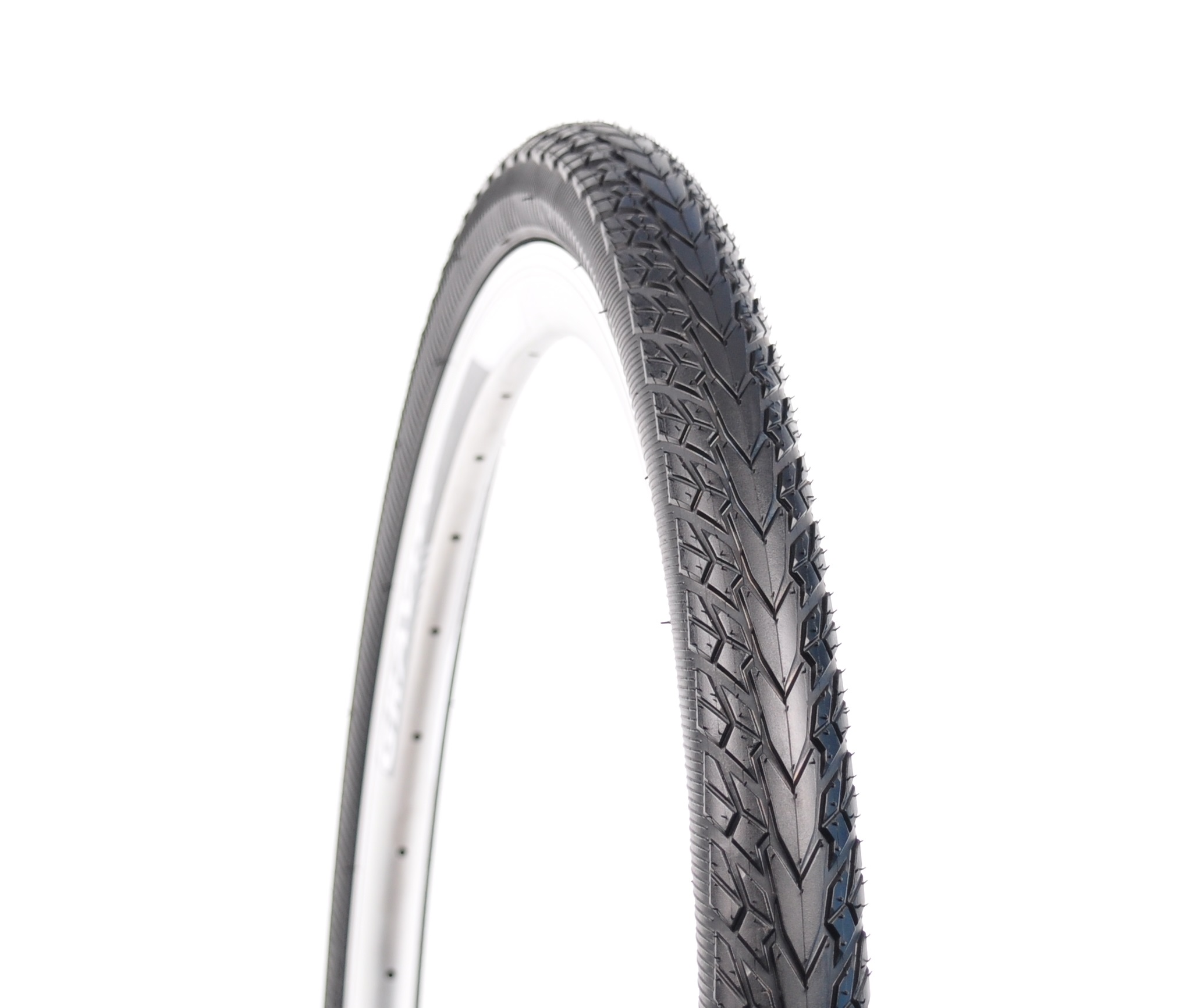 Виготовлена зі зносостійкого компаунду, шина вирізняється тривалим терміном експлуатації та стійкістю до стирання. Міцний каркас забезпечує стабільність форми шини навіть при значних навантаженнях, що особливо важливо для власників дорожніх велосипедів з багажниками. Це надійне та практичне рішення для щоденного використання та тривалих велопрогулянок.