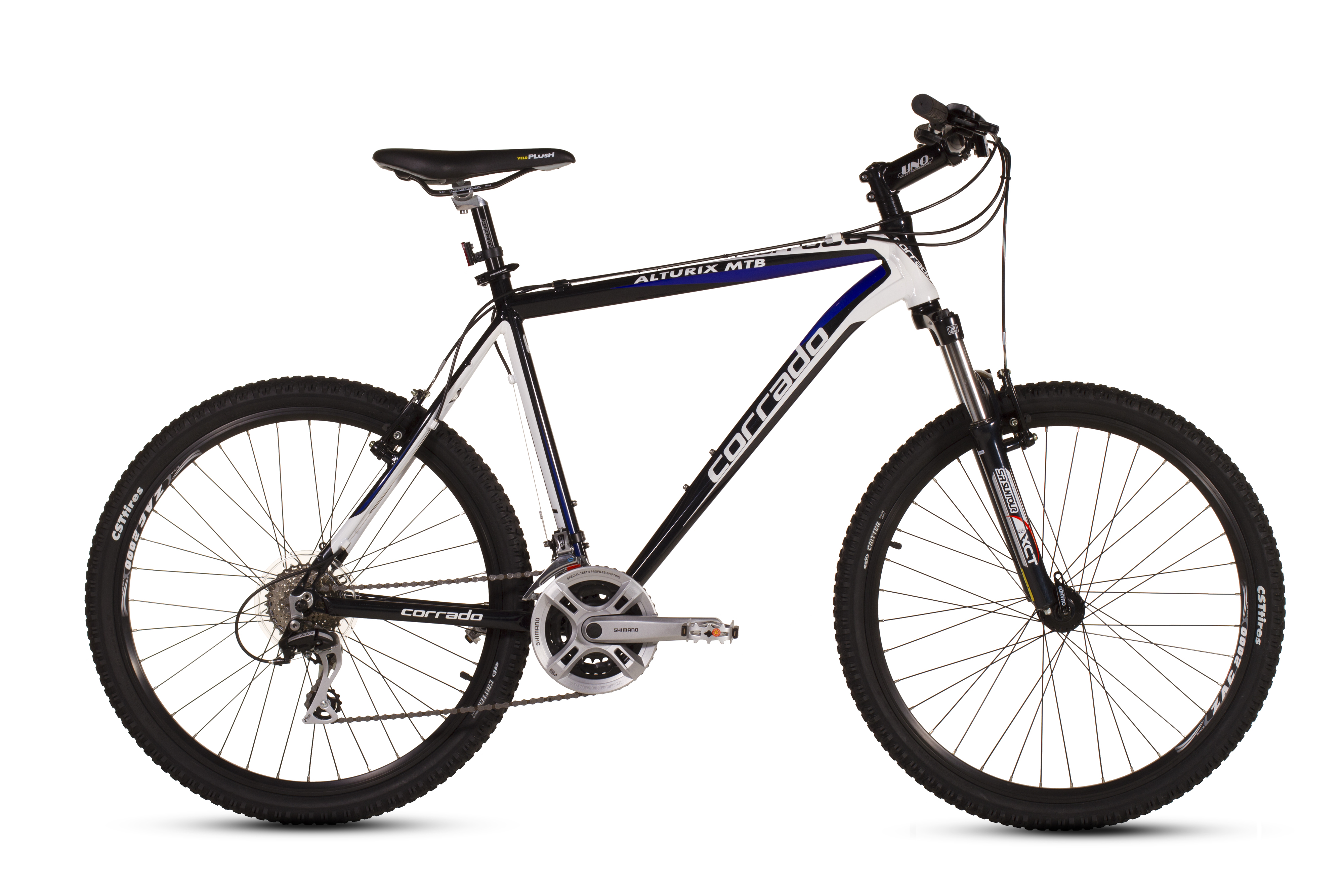 Corrado Altutix – це високоякісний гірський хардтейл, який підійде як для пересування бездоріжжям, так і для прогулянок міськими велодоріжками та парковими алеями. Крім стильного дизайну Altutix має надійне і довговічне навісне обладнання. Алюмінієва рама допомогла зменшити загальну вагу велосипеда без втрати міцності. Амортизаційна вилка RST має функцію регулюваня жорсткості, яка допоможе при катанні рівними дорогами. Трансмісія від компанії Shimano належить до категорії аматорської.